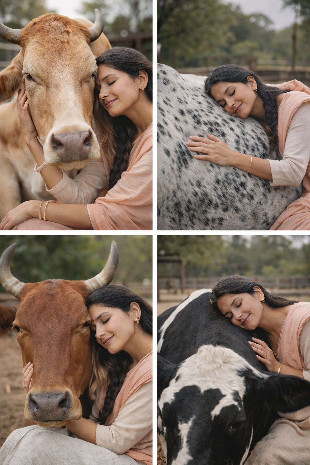 Cows are naturally relaxed and emotionally sensitive animals. When humans interact with them through gentle touch and quiet presence, it can create a deep feeling of calm and emotional comfort.