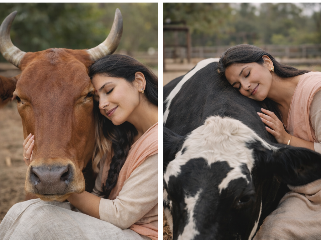 Cow Cuddle Therapy is a calming wellness experience where people spend peaceful time with gentle cows in a natural farm environment.
