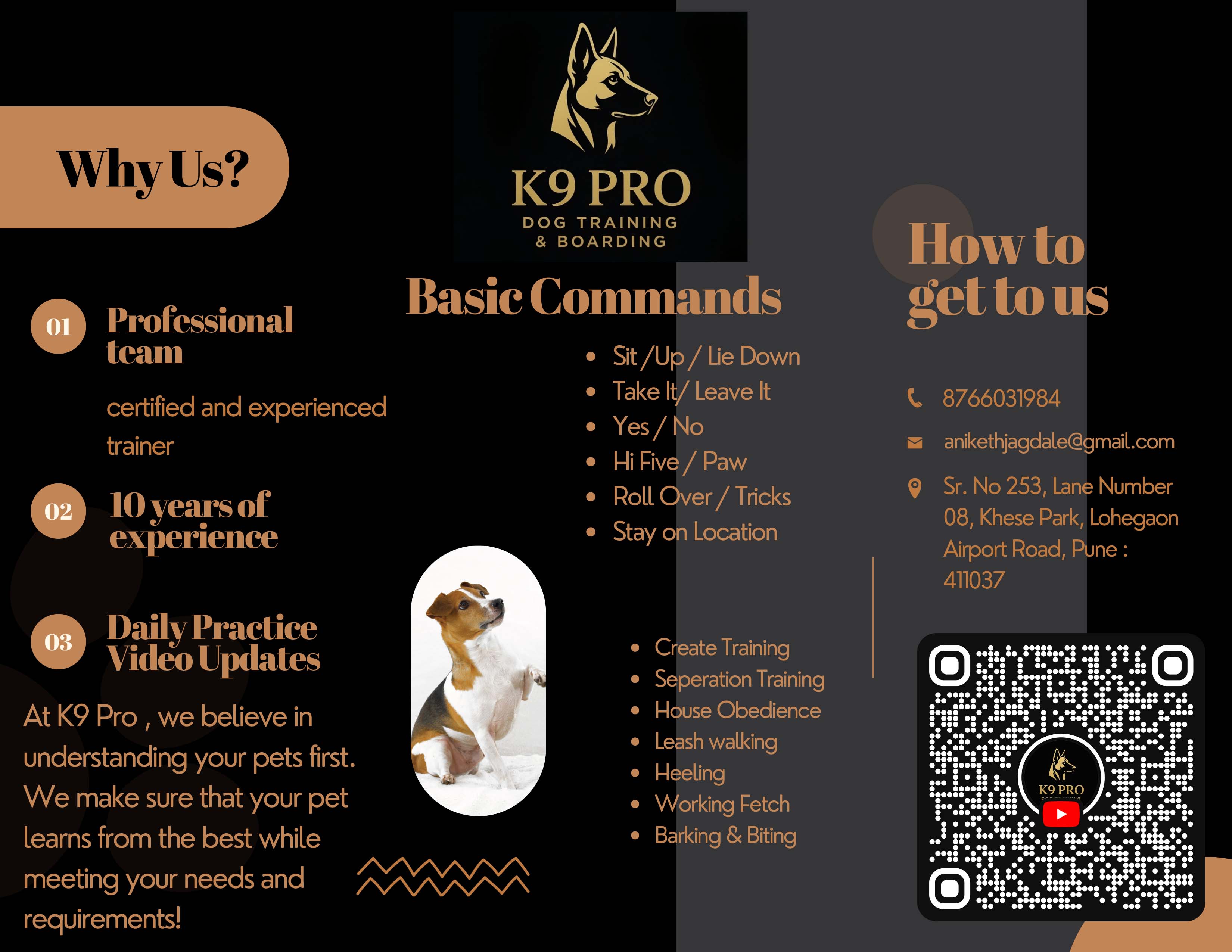 K9 Pro's dog training programs in Pune deliver professional results through private lessons, group classes, or immersive board & train options. We cover everything from puppy basics to complex behavior fixes using certified, gentle techniques.